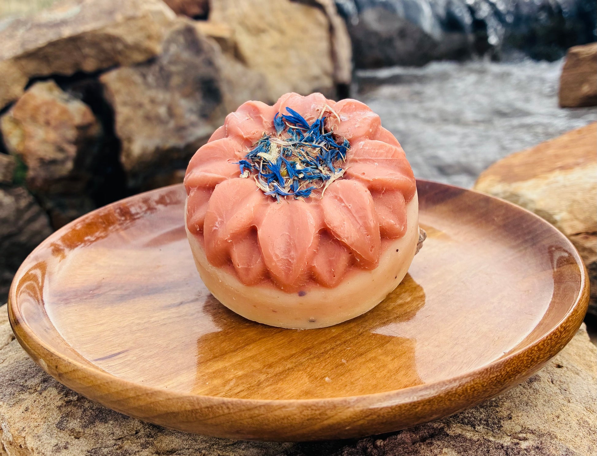 Water, Coconut Oil, Ricinus Oil, Kokum Butter, Mango Butter, Sodium Hydroxide, Olive Oil, Avocado Butter, Palm Oil, Essential Oils (Lemon and Lemongrass), Kaolin Clay, Cornflower Petals, Ground Almonds